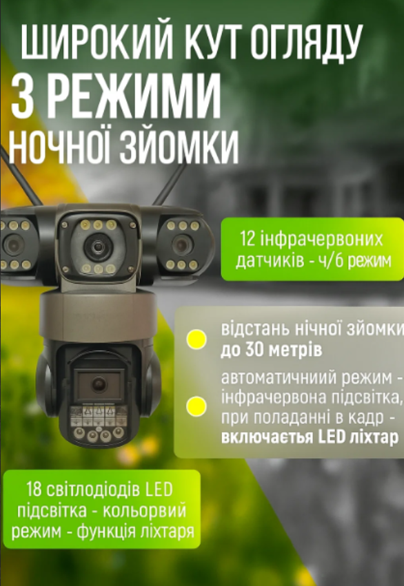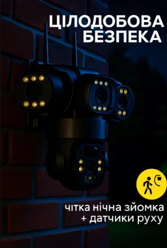 📡 Камера відеоспостереження з трьома незалежними об’єктивами — максимальний огляд і контроль без сліпих зон!